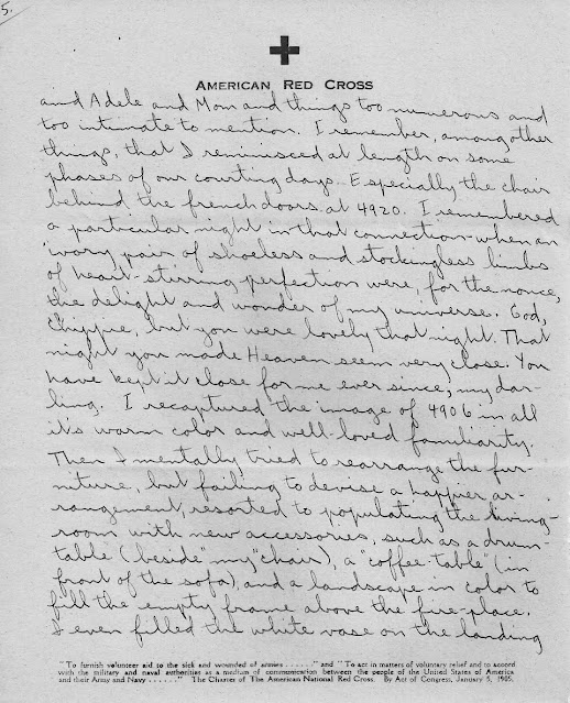 Here is the first of what I hope to make a veritable series of letters during this furlough in London. The logical place to start of course, is at the beginning, and the beginning starts yesterday morning. On arising, instead of the customary fatigues, I donned my class “A” from the skin out and lucky I did, for on learning that there was a 10:20 bus into the town where I catch the train for London, I had to dash like mad to make it, nor would I have attempted it, had I had to change. As it turned out, I missed the bus anyway, but luckily as I reached the gate, a Jeep drove up and since it was going to town I had a swell ride in and got there in plenty of time to catch the train. The train was jammed and it was only because three of “my British buddies” kindly “squeezed up” to make room for me that I sat instead of standing all the way of a pretty long trip. I took out my book of detective stories and resumed reading where I left off on my last trip. The “Tommies,” though, were recounting their adventures in Norway and Iceland, whence they had recently returned to England. For a time—I read with one eye on the book and one ear on their conversation. However, what the one ear heard was entirely too intriguing to be shared with the book, whereupon I closed it and turned my frank attention to what they were saying. During a lull, I offered my “Yank” cigarettes and gum around. Over here, both are usually gratefully received by civilian and soldier alike, and this particular occasion was no exception. (Did I tell you about the time I absentmindedly took a stick of gum from my pocket while walking down a London Street, only to have a very well-dressed and respectable gentleman approach me with an almost fanatical gleam in his eye, and unashamedly ask for a piece of gum? I've often read of people “gaping in surprise [or wonderment],” but I think this was the first time in my life I was guilty of it. No kiddin’, Chippie, I was literally stupefied!) I only mention the incident to illustrate the state of mind of the average Englishman where “Yankee” gum is concerned. Indeed, it is rumored that an indispensable item of equipment of the “G.I. wolf” is a few packs of gum; seems to have the hypnotizing quality of catnip for the English lassies. Anyhow, to get back to where I was, from then on the attitude of the Tommies was one of eager cordiality, and when we parted at Liverpool Station a few hours later, it was almost a tearful occasion, so “thick” had we become. Having missed both breakfast and lunch [and supper the previous night], I was just about famished when I arrived at the Eagle Club. I straightway preceded (after I had checked my things) to get on the outside of a toasted cheese sandwich, a toasted peanut butter and jam sandwich and a cup of coffee. Feeling better, then, I preceded to walk around the corner, to the “Odeon,” where “Jane Eyre” is being featured. It goes without saying that I enjoyed it immensely. It is on the order of “Rebecca,” even if it doesn't approach that classic in worth. The suspense angle is its chief attraction, but the plot itself is not nearly as intriguing as was “Rebecca.” John Fontaine gives her usual excellent performance. Orson Welles is wonderfully cast as “Edward Rochester,” and while he is perfection itself in the morose and moody phases of his personality, he fails somehow to inspire in the audience the love and adoration that “Jane Eyre” evidently feels for him. (Or maybe I'm mistaken.) The afternoon was still young when I came out, so I hied myself back to the Eagle, ate a couple more sandwiches, and went directly to the “Warner,” where “This is the Army” is just starting its run. I enjoyed it ,of course, but it wasn't the wonder of wonders I had been led to expect. I've seen many musicals that I've enjoyed more. Back to the Eagle again for a bite and a bit of (am I kiddin’?) relaxation. After eating, (I forget what) I strolled down to the lounge, sank into one of those very comfortable easy chairs I once told you about, and listened and dreamed to the music of a very competent G.I. who was playing something by Chopin on piano. This pleasant interlude lasted for an hour or so. When I looked at the clock, finally, it said 9:00 o'clock. Whereupon I gathered up my overcoat and my small musette bag, which is ever-present (I carry soda, glass and spoon in it), and by the light of my torch (flashlight to you, Sweet) made my way to the U.G. at Leicester Sq. and thence to Russell Sq. and the Turkish bath. Chippie, how can I begin to describe the luscious feeling of well being I experience in that intense, but oh-so-delicious, heat? In order to appreciate it fully, one would first have to put up with three weeks of mud and damp cold and that “unwashed feeling.” Never was I more thankful or more appreciative of the luxurious comforts of the bath. I lingered long in the hot room, reading the while the glorious and heartening news from the “Dnieper Bend.” When my very bones were pervaded with the delectable warmth, and after a briefer session in the “steam room,” I gave myself over to the capable ministrations of my old friend, the bewhiskered masseur. He preceded to wash and knead me into a pleasant state of drowsiness. After he had literally tucked me in and turned out the light, I lay for a long while thinking of you, my darling, and Adele and Mom and things too numerous and too intimate to mention. I remember, among other things, that I reminisced at length on some phases of our courting days, especially the chair behind the French doors at 4920. I remember a particular night in that connection—when an ivory pair of shoeless and stockingless limbs of heart-stirring perfection were, for the nonce, the delight and wonder of my universe. God, Chippie, but you were lovely that night. That night you made heaven seem very close. You have kept it close for me ever since, my darling