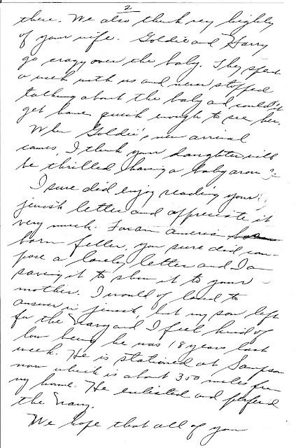 You have the most adorable daughter and she is as clever as her good looks and we sure did enjoy being with her. The few days that we were there. We also think very highly of your wife. Goldie and Harry go crazy over the baby. They spent a week with us and never stopped talking about the baby and couldn't get home quick enough to see her. When Goldie’s new arrival comes, I think your daughter will be thrilled having a baby around.